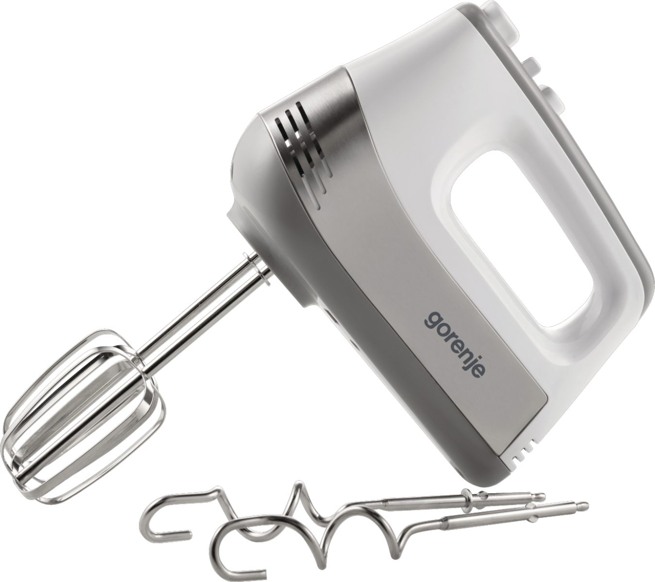Starostlivo navrhnuté nerezové metly a háky na cesto sú dodávané s ručným mixérom. Ideálne na sušienky, chlieb alebo šľahačku.