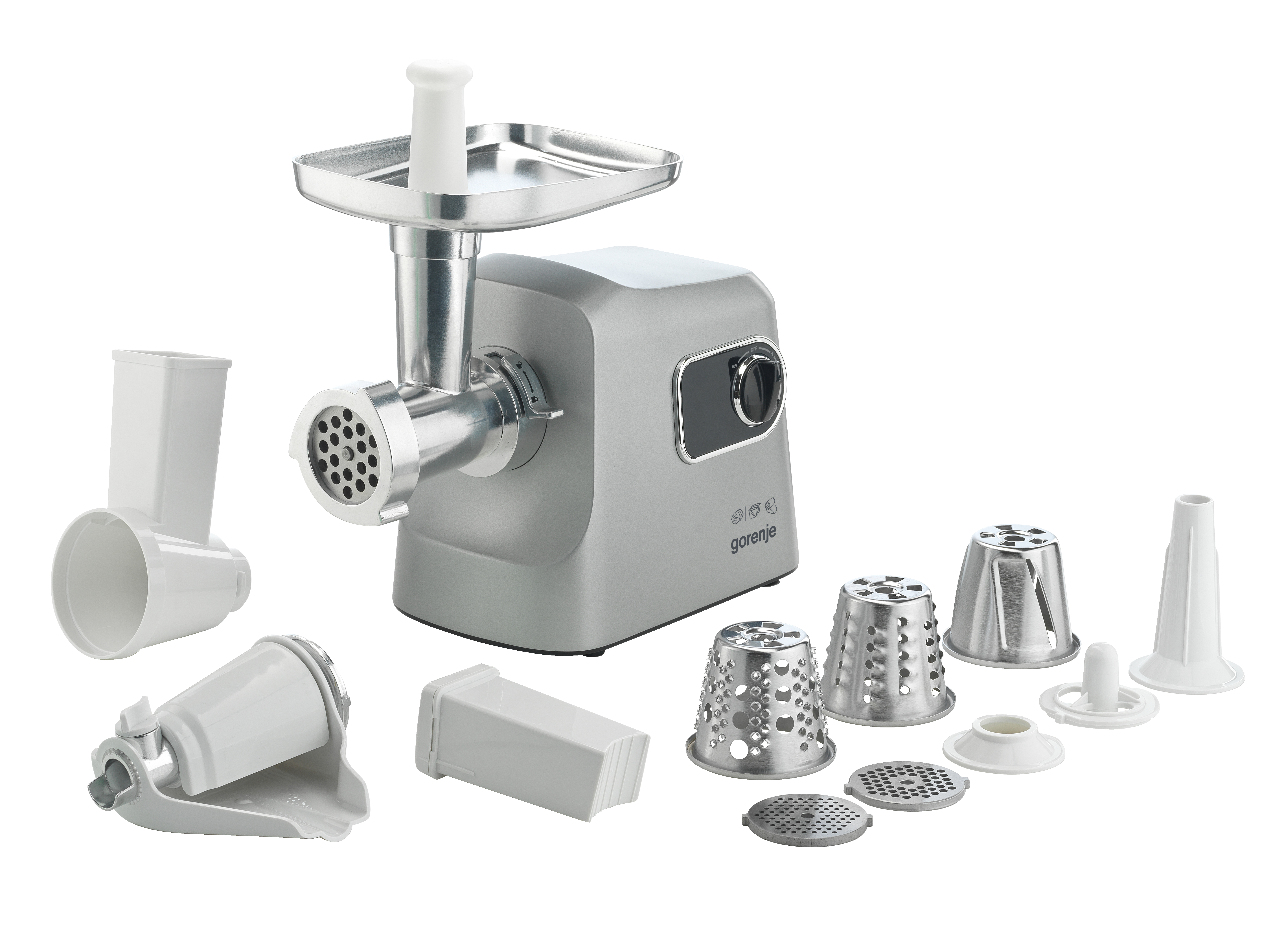 Mlynček je vybavený prepínačom smeru otáčania, ktorý vám pomôže v prípade zaseknutia. Funkcia reverzného chodu vám výrazne ušetrí čas pri mletí mäsa s veľkým množstvom spojivového tkaniva.